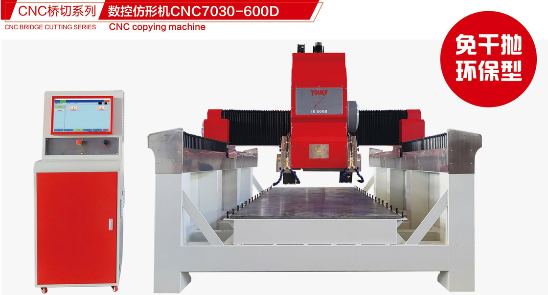 ★ Perfilador de piedra CNC para contornos lineales/en forma de arco. Flujo del proceso: 1 corte en bruto → 2 corte de precisión → 3 barrido automático de la base horizontal. Sistema fácil de usar que acepta entradas de código CAD/G.